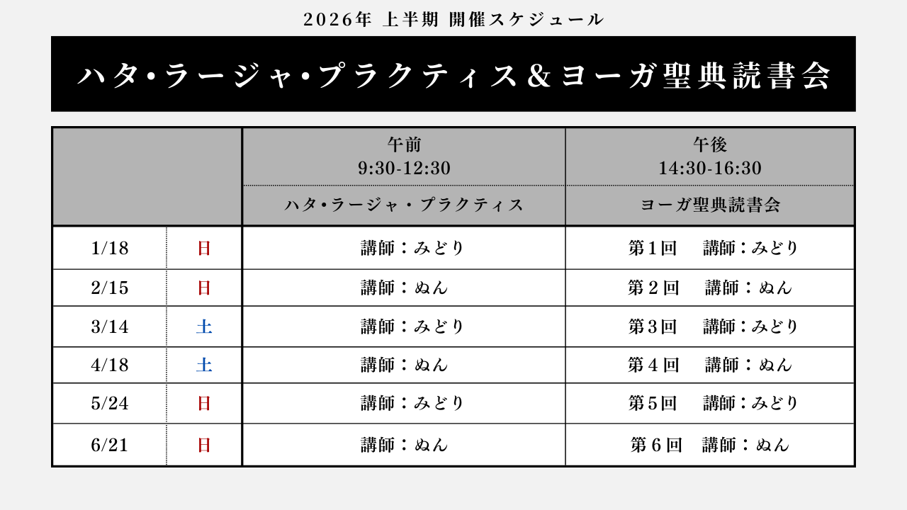 『ハタ・ラージャ・プラクティス』を月一回のレギュラークラス化が決定したので、せっかくならば同じ日の午後に、ヨーガ聖典について触れてみる読書会も開催してみようということになりました。