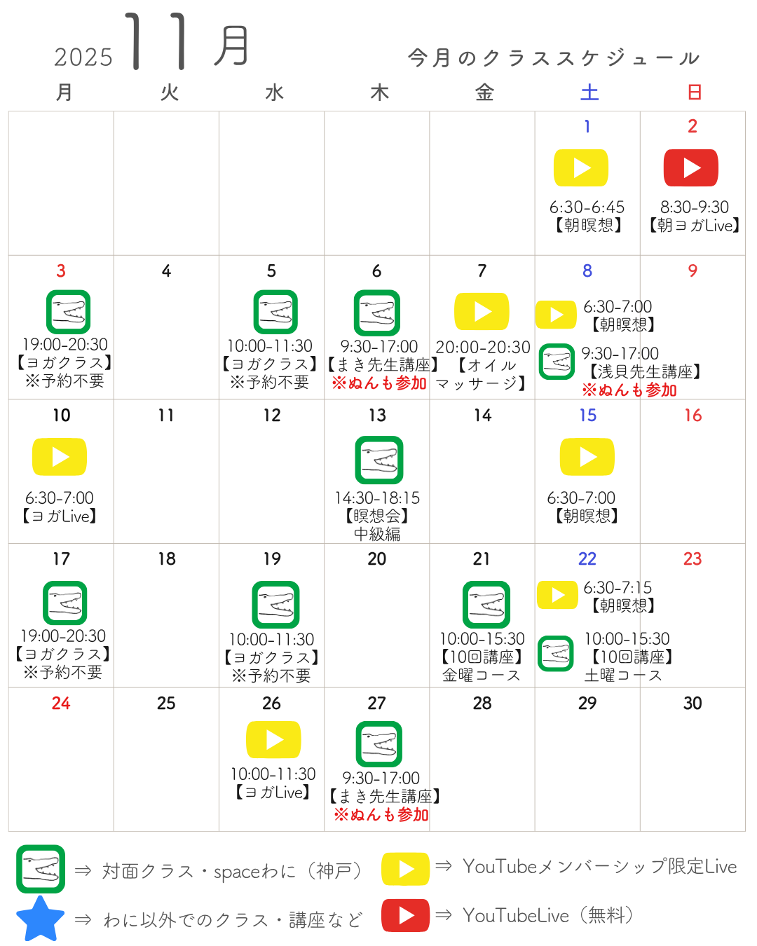 ※月曜夜クラスは2025年末をもって終了します。
