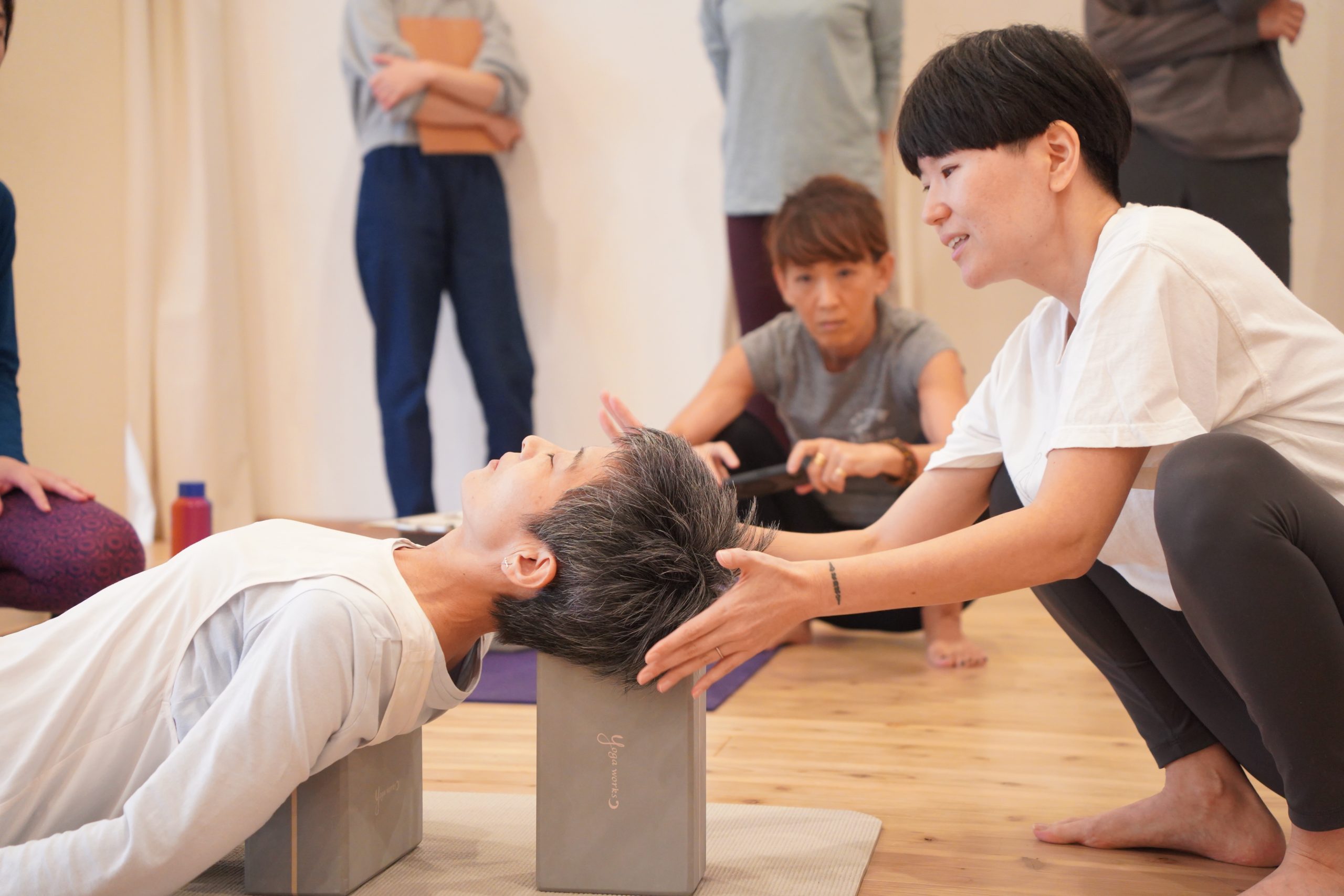 博多からお招きするあき先生には、アーサナ(ポーズ)の正しいポジション「アライメント」や、生徒さんのポーズを修正していく「アジャストメント」について、伝えてもらいます。