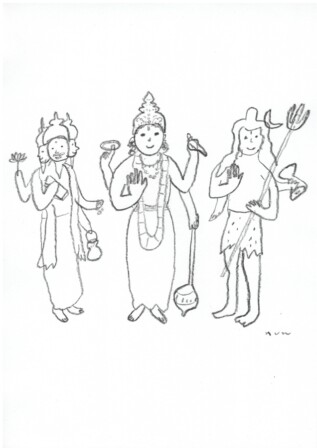 創造の神「ブラフマー」、維持の神「ヴィシュヌ」、破壊の神「シヴァ」。