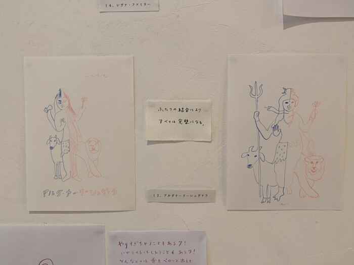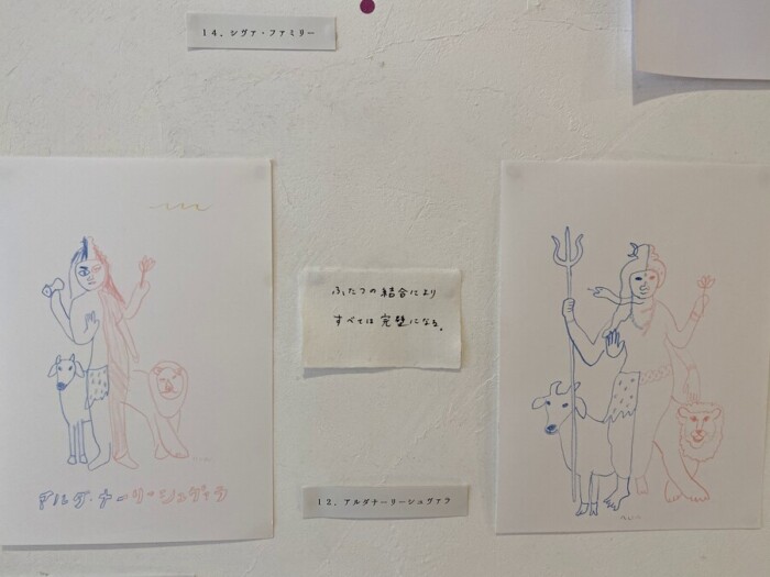 男らしさと女らしさを兼ね備えた男女両性の神で、シヴァ神(右半身)とその妻パールヴァティー(左半身)の合体した姿だと言われる。
