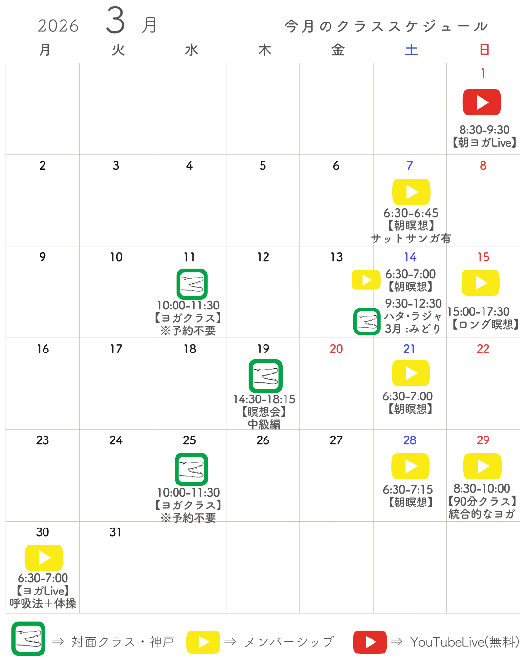 ・3/30(月)朝6:30-7:00 30分のヨガ・プラクティス(呼吸法+体操)