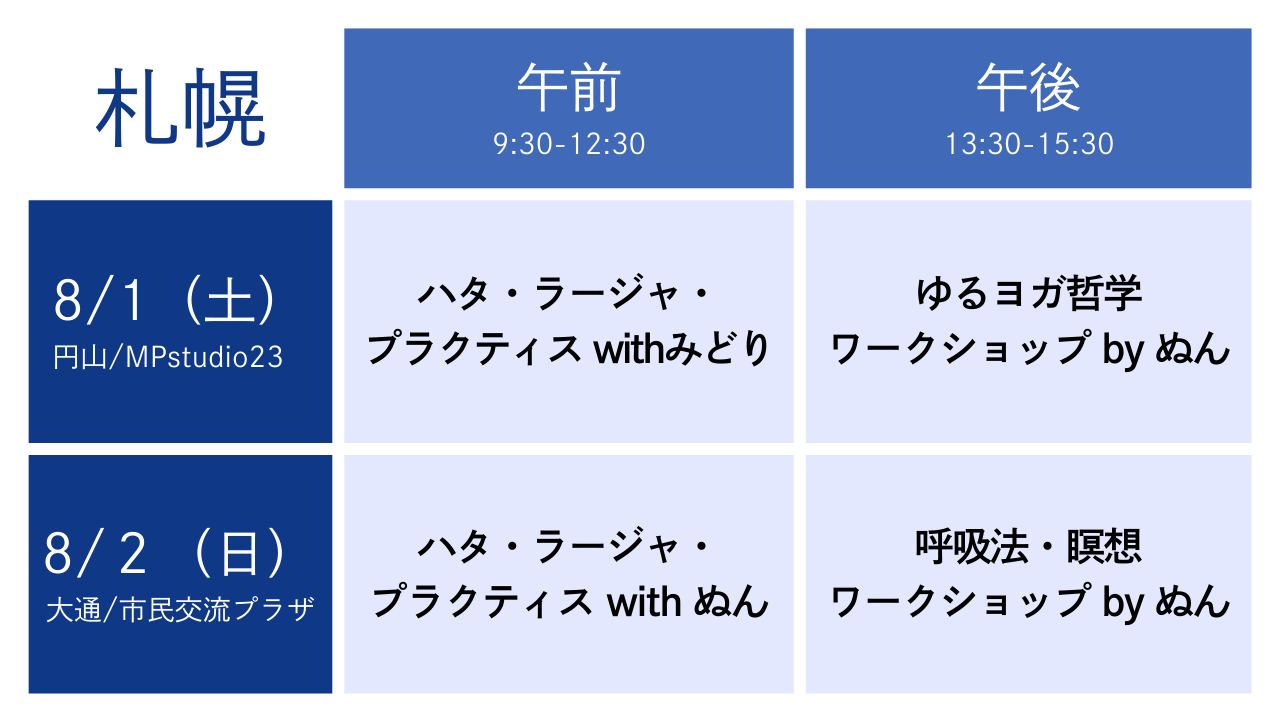 ◎8月2日(日)9:30-12:30『ハタ・ラージャ・プラクティス with ぬん』