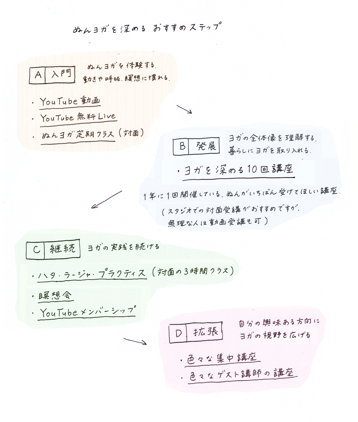 ぬんが開催しているクラスや講座を改めて整理し、おすすめの受講の流れを作ってみました。